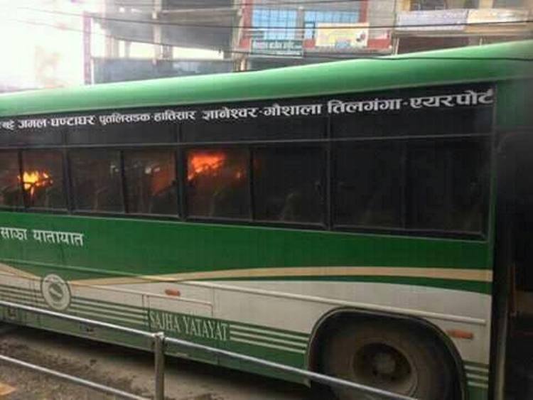 विप्लव नेतृत्वको नेपाल कम्युनिष्ट पार्टीका कार्यकर्ताले शनिबार बालाजु बाइपासमा आगो लगाएको बस प्रधानमन्त्री प्रचण्डले उद्घाटन क्रममा चढेका थिए । प्रधानमन्त्री बसेकै सिट जलेर नष्ट भएको छ ।