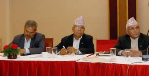 शुरुमा कार्यक्रमको औचित्यबारे खतिवडाले संक्षिप्त धारणा राखनुभएको थियो । त्यसपछि सम्बोधन गर्नुभएका पूर्व प्रधानमन्त्री समेत रहनुभएका अध्यक्ष ओलीले निकै गम्भीरताका साथ आफ्ना धारणा राख्नुभएको थियो । उहाँले मधेसी मोर्चातर्फ संकेत गर्दै चुनाव शर्तमा कहिल्यै नहुने उल्लेख गर्नुभयो । त्यसैले स्थानीय चुनाव एक दिन पनि पछि सार्ने अवस्था नरहेको ओलीको प्रष्टोक्ति थियो ।