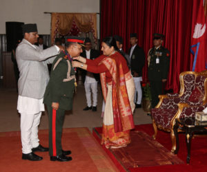 शीतल निवासस्थित राष्ट्रपति कार्यालयमा आज आयोजना गरेको विशेष समारोहबीच राष्ट्रपति भण्डारीले विभिन्न विधाका २५८ जनालाई विभूषण प्रदान गर्नुभएको हो ।