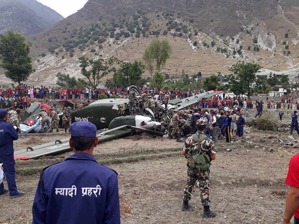 उनका अनुसार सेनाको विमानमा चामल र कुखुुराको मासु थियो । विमान दुर्घटना हुनेबित्तिकै प्रहरी र नेपाली सेनाभन्दा अगाडि स्थानीयवासी पुगेर घाइतेको उद्धार गरेको स्थानीय अनिल शाहीले बताए । विमान खसेको पाँच मिनेटमै गाउँले घटनास्थल पुगेका थिए । नयाँपत्रिकामा समाचार छ ।