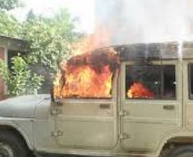 दोलखामा मध्यरातमा गाडी जलाइयो