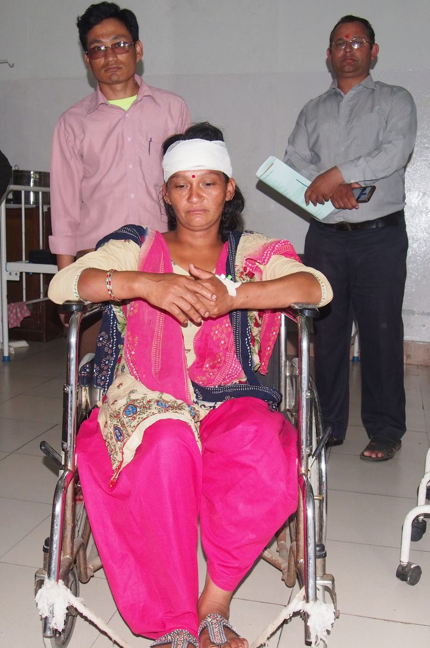 पतिले बाँसको चिर्पटले टाउको, ढाड र हातमा प्रहार गरेको उनले बताइन् । उनको दाहिने हात भाँचिएको छ । उनको टाउकोमा समेत चार वटा टाँका लगाइएको छ । हातको हड्डी नै भाँचिएकोले शल्यक्रिया गरेर स्टिल राख्नुपर्ने चिकित्सले बताएका छन् ।
