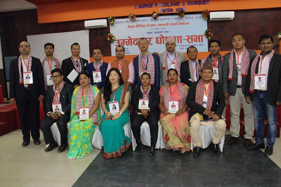 काठमाडौं, १० असार । नेपाल वैदेशिक रोजगार व्यवसायी संको आसन्न निर्वाचनका लागि प्रगतिशिल वैदेशिक रोजगार व्यवसायी मञ्च लगायतका व्यवसायीहरुको संयुक्त व्यवसायी समूहले उमेद्ववारी घोषणा गरेको छ ।