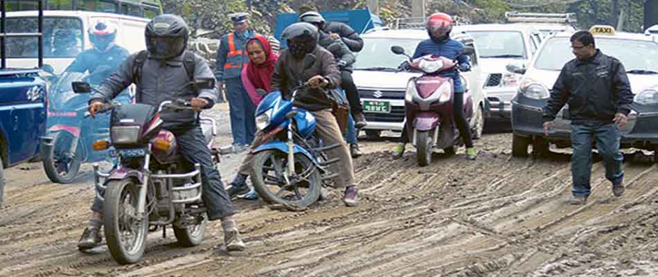 काठमाडौं, ९ साउन । उपत्यकाका सडकका खाल्डा ग्राभेल मात्र हालेर पुर्न थालिएको छ । ग्राभेलले मात्र पुरेको सडक भोलिपल्ट उस्तै हुने गरेका छन् । कतिपय ठाउँमा सवारी गुड्दा गुड्दै पनि ग्रभेल उप्किन थालेको छ ।