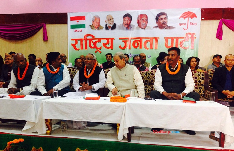प्रधानमन्त्री शेरबहादुर देउवा, माओवादी केन्द्रका अध्यक्ष पुष्पकमल दाहाल प्रचण्ड, निर्वाचन आयोगका पदाधिकारी र राजपा अध्यक्षमण्डलका सदस्यहरूबीच आइतबार भएको बैठकमा राजपालाई एउटा निर्वाचन चिह्नमा सहभागी हुने वातावरण बनाउन छलफल भएको थियो ।