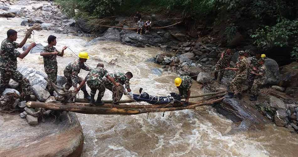 सैनिक जनसम्पर्क निर्देशनालयका अनुसार हालसम्म चार हजार ५०० जनाको स्थलगत तथा एक हजार १०० जनाको हवाई उद्धार गरिएको छ । बाढी तथा पहिरो प्रभावित क्षेत्रमा खोज, उद्धार तथा राहतका लागि स्थानीय प्रशासनसँगको समन्वय तथा सहकार्यमा आवश्यक उद्धार सामग्रीसहित नेपाली सेनाको उद्धार टोलीसहित पाँच हेलिकप्टर निरन्तर रुपमा परिचालन भइरहेको सैनिक मुख्यालयले जनाएको छ ।