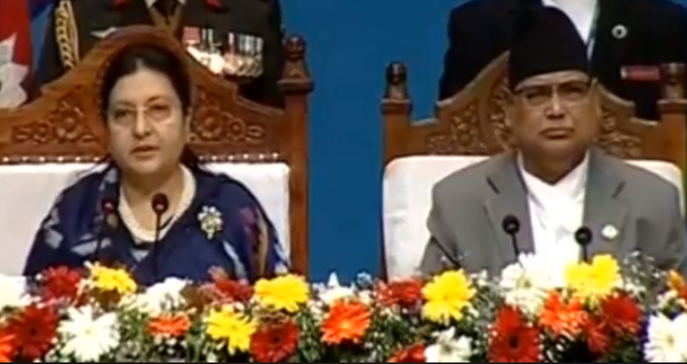 राष्ट्रपति विद्यादेवि भण्डारीले आज प्रतिनिधिसभा तथा राष्ट्रियसभाको संयुक्त वैठकमा सरकारको नीति तथा कार्यक्रम प्रस्तुत गरेको छिन् । वर्तमान सरकारले आफ्नो चुनावको समयमा घोषणा गरेको आफ्नो दलको घोषणा पत्रलाई नै आधार वनाएर नीति तथा कार्यक्रम प्रस्तुत गरिएको छ । अवको नेपालको लक्ष्य समाजवाद भएकाले त्यस अनुरुप नै कार्यक्रम ल्याइएको छ ।