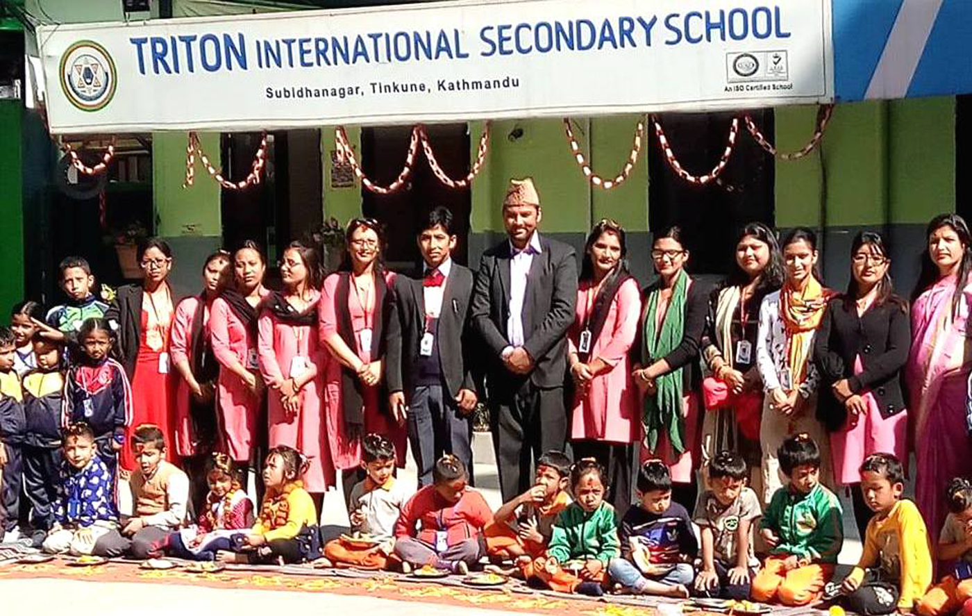 विद्यार्थीलाई सहभागी गराई हिन्दु धर्मसंस्कृति अनुसारका चाडपर्व व्यवहारिक रुपमा मनाउँदै आएको ट्रिटन इन्टरनेशनल एकेडेमी सेकेण्डरी स्कुलले यो वर्ष पहिलोपटक म्हः पुजा गरिएको विद्यालयकी भाइस प्रिन्सिपल ममता शाहले बताउनुभयो ।