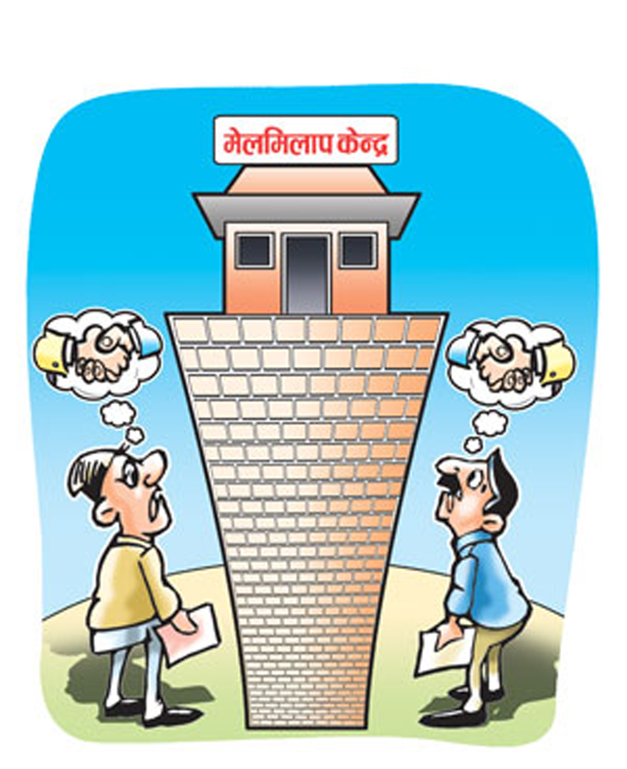 स्थानीय विवाद निरूपण गर्न प्रत्येक स्थानीय तहका वडामा आवश्यकताअनुसार मेलमिलाप केन्द्र गठन गर्न सकिने कानुनी व्यवस्था भए पनि त्यसतर्फ स्थानीय तहका जनप्रतिनिधिको ध्यान जान सकेको छैन । अाजकाे गाेरखापत्र दैनिकमा खबर छापिएकाे छ ।