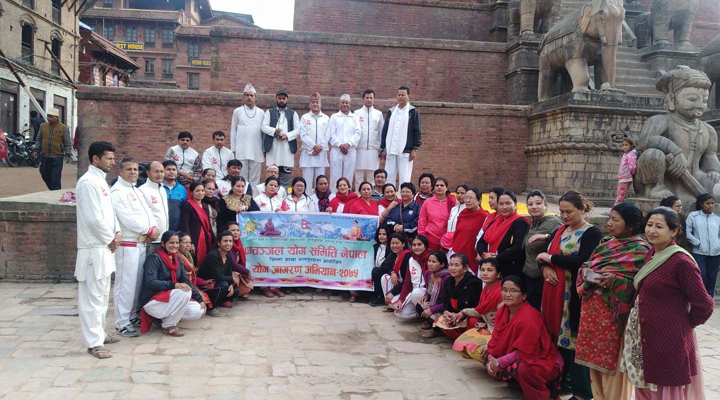 योग जिल्ला समन्वय समिति भक्तपुरका अध्यक्ष एवं पातञ्जल योग समिति नेपालका अभिभावक बालमुकुन्द सुवालको प्रमुख आतिथ्यतामा भक्तपुर नगरपालिकाको टौमढी क्षेत्रको पाँचतले मन्दिरको प्राङ्गणमा सयौं योग साधक एवं स्थानीयबासीहरुको उपस्थितिमा योग जागरण अभियान समापन भैरहदाँ सुवालले योगजागरण अभियानले हजारौ भक्तपुर बासी दाजुभाई तथा दिदीबहिनीहरुलाई प्रत्यक्ष जोडन सफल भएको उल्लेख गर्दै सम्पूर्ण जिल्लाबासी समक्ष योगलाई दैनिकी जीवनशैली बनाउन आग्रह गर्नु भएको छ ।
