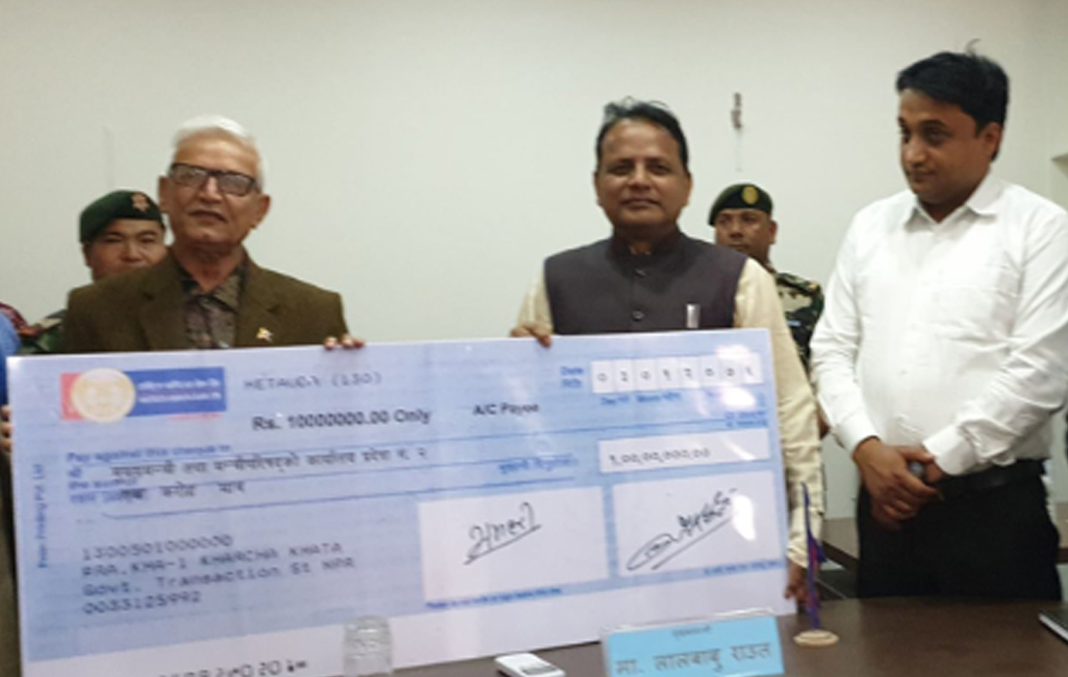 प्रदेश २ को मुख्यमन्त्री तथा मन्त्रिपरिषद्को कार्यालयमामुख्यमन्त्री पौडेलले मुख्यमन्त्री राउतलाई एक करोडको चेक हस्तान्तरण गरेका हुन ।