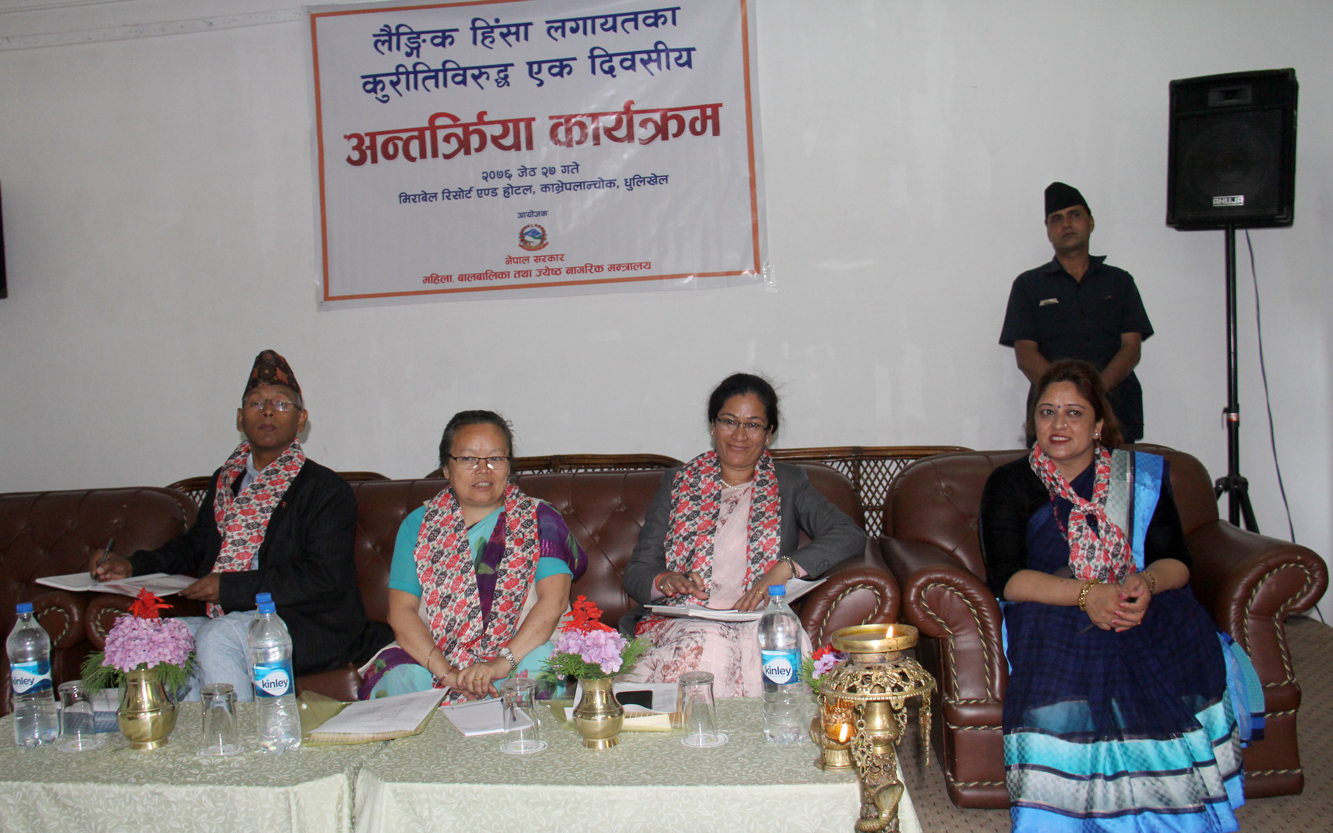 काभ्रे, २८ जेठ । काभ्रे जिल्लाबाट निर्वाचित महिला जनप्रतिनिधिहरुलाई लैङ्गिक हिंसालगायतका कुरितीहरुको विरुद्धमा एक दिने अन्तरक्रिया कार्यक्रम सम्पन्न भएको छ ।