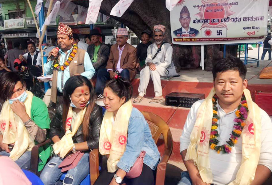 मंगलबारे चोकमा आयोजित पार्टी प्रवेश कार्यक्रममा मंगलबार समाजवादी पार्टीको धरान उपमहानगर कमिटीको सचिवालय सदस्य तथा वडा नं ११ का अध्यक्ष अध्यक्ष यम (किराँती) राई, संघीय समाजवादी कलाकार सांस्कृतिक मञ्च धरानका अध्यक्ष एवम् समाजवादी १७ नम्बर पुर्वअध्यक्ष मिलन राईसहित १४ जना नेकपामा प्रवेश गर्नुभएको हो ।