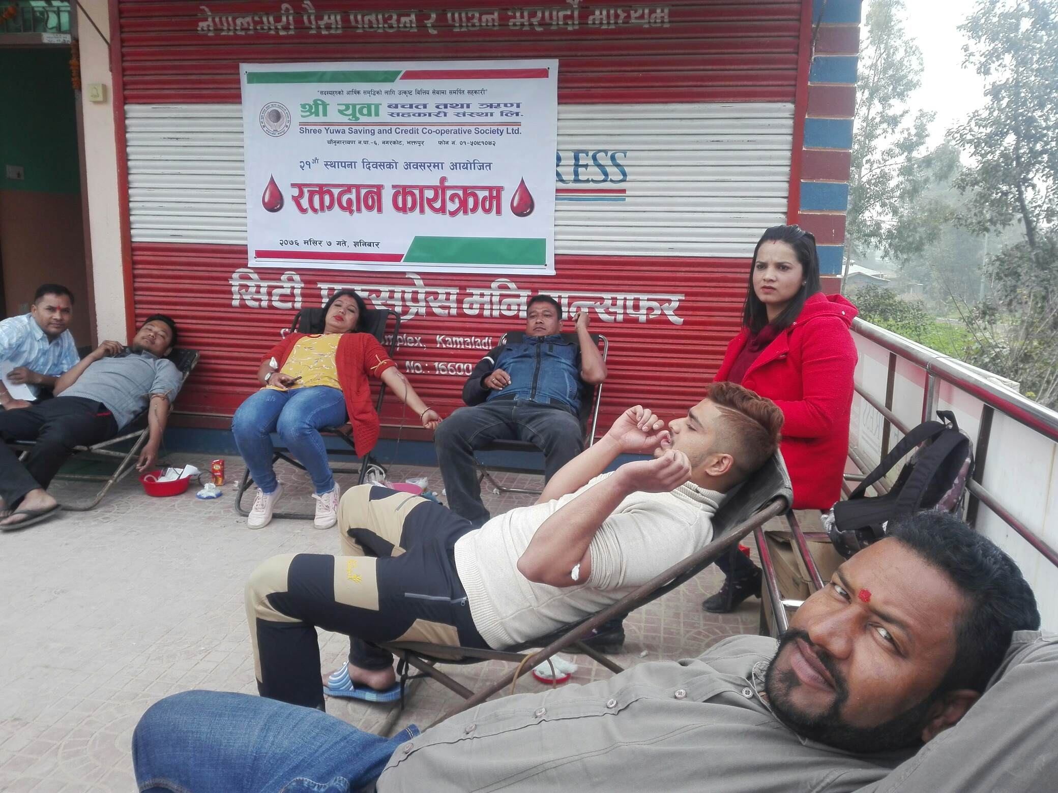 भक्तपुर, ९ मंसिर । श्री युवा बचत तथा ऋण सहकारी संस्था लि. ले २१औं स्थापना दिवसको अवसरमा आयोजना गरेको रक्तदान कार्यक्रममा ८२ जनाले रक्तदान गरेका छन् ।