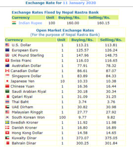 काठमाडौँ, २६ पौष । नेपाल राष्ट्र बैंकले आज शनिबार तोकेको विनिमय दर अनुसार दर यस प्रकार रहेको छ ।
