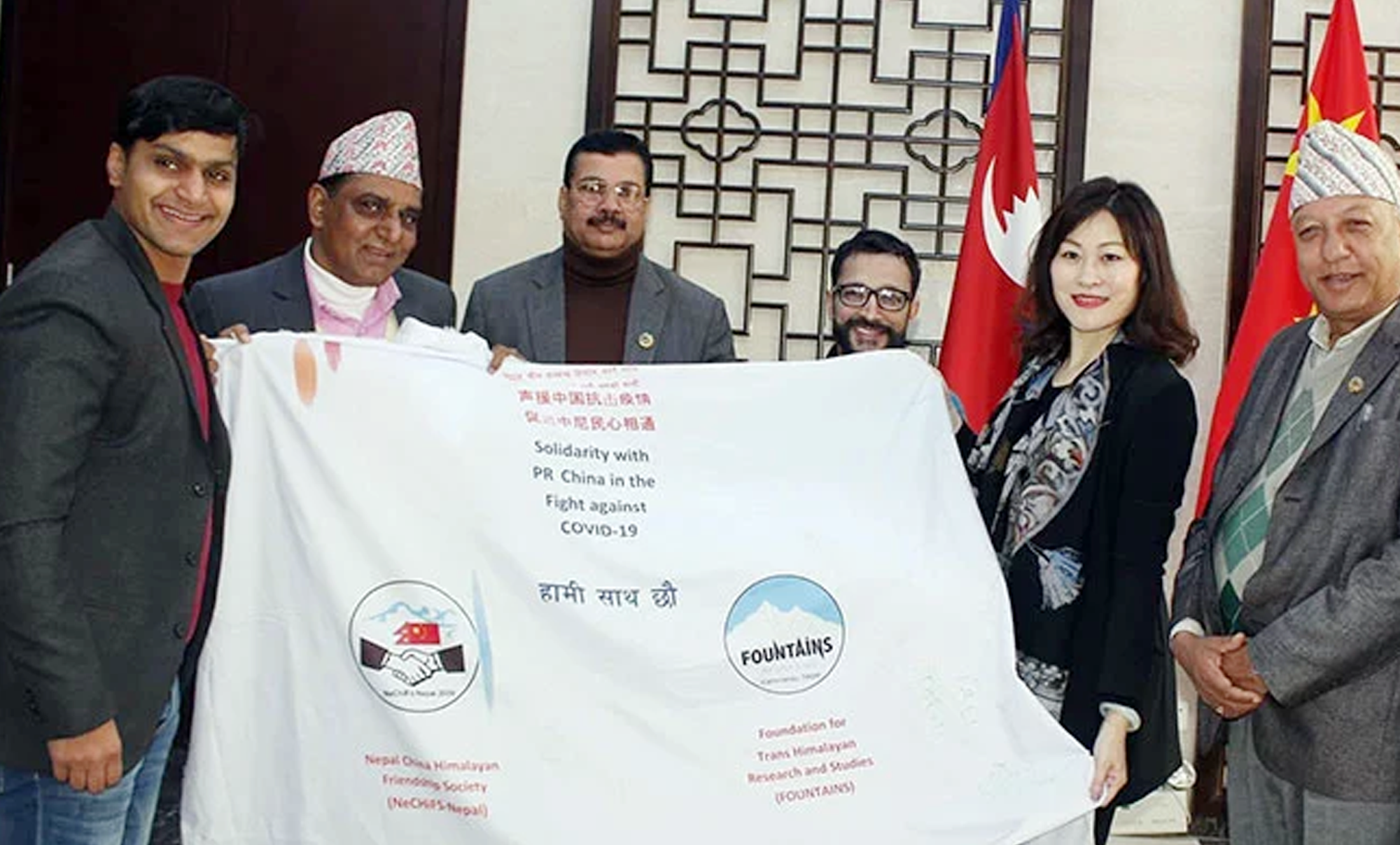 काठमाडौँ, १३ फागुन । कोरोना भाइरसविरुद्ध लडिरहेको छिमेकी चीनलाई नेपाली नागरिकहरुको तर्फबाट ‘हामी साथमा छौं’ भन्ने ब्यानरसहित संकलित हस्ताक्षर बुझाइएको छ ।