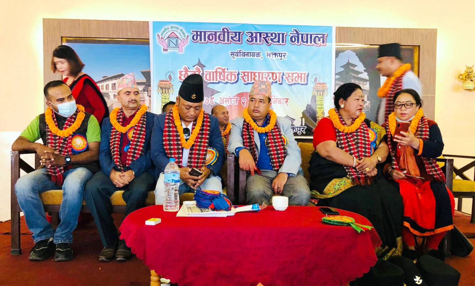 भक्तपुर, ३ असोज । सामाजिक सेवाको भावनाले ओतप्रोत रही सञ्चालनमा ल्याइएको मानविय आस्था नेपालको छैंठौं वार्षिक साधारण सभा सम्पन्न भएको छ ।
