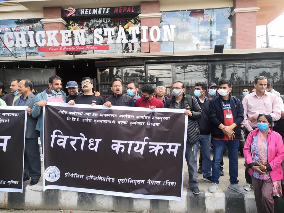 राजेश कुशवाहामाथि भएको दुर्व्यवहारबिरुद्ध सडकमा उत्रिए इञ्जिनियर