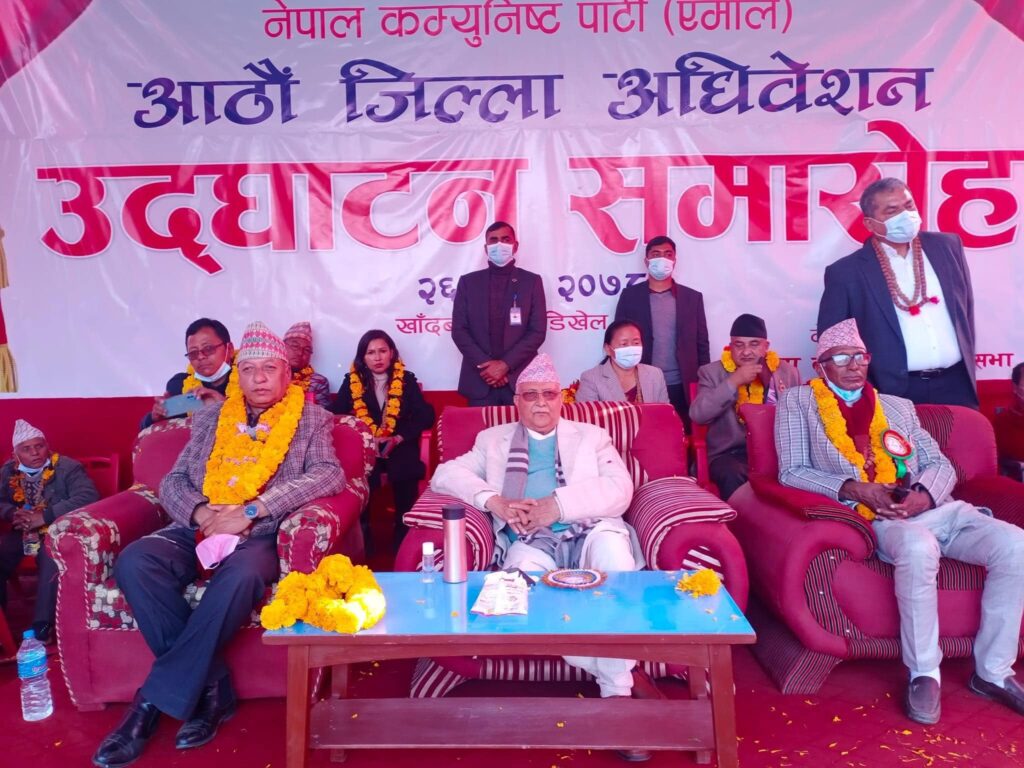 उहाँले भन्नुभयो, ‘वामपन्थीको खोल ओडेका पार्टीमा साथीहरु अलमल नगर्नुहोस् । एमाले मात्रै परिवर्तन चाहाने, देशमा उन्नती, प्रगति चाहाने, सामाजिक न्याय र समानता दिने पार्टी हो । वामपन्थी खोल ओडेर प्रतिक्रियावादी काम गर्ने दक्षिणपन्थीको सेवामा समर्पित हुने, कम्युनिष्ट पार्टी फुटाउने, सरकार ढाल्ने र आफूलाई दक्षिणपन्थी खेमामा समाहित गर्ने तत्व र तीनका पार्टीमा नअलमलिन आग्रह गर्छु । विकासका लागि एमाले नै चाहिन्छ,किमाथाङका सडक एमालेले सुरुवात गर्यो ।’