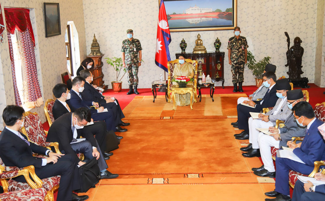 नेपालको चारदिने भ्रमणमा रहेको लिउ नेतृत्वको प्रतिनिधिमण्डल आज बिहान शीतलनिवास पुगी राष्ट्रपतिसमक्ष शिष्टाचार भेटवार्ता भएको हो ।