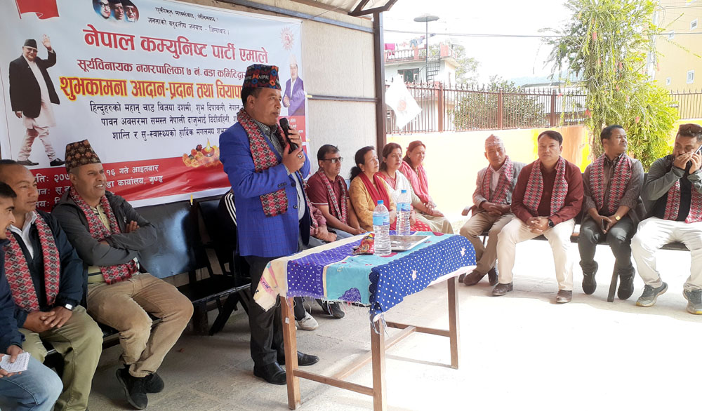 कार्यक्रममा जिल्ला समन्यव समितिका प्रमुख इश्वर थापा, एमालेका जिल्ला नेता तथा समाजसेवी किरण थापा, मनकराम थापा, सरिता कुँवर, एमाले सूर्यविनायक नगरकमिटी अध्यक्ष रविन्द्र सापकोटालगायतको उपस्थिती रहेको थियो ।