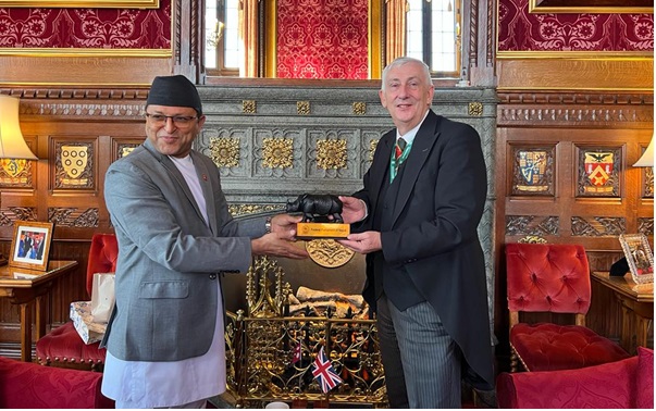 काठमाडौँ, ९ कार्तिक । बेलायतको भ्रमणमा रहेका राष्ट्रियसभाका अध्यक्ष गणेशप्रसाद तिमिल्सिना र बेलायतको तल्लो सदन हाउस अफ कमनका सभामुख सर लिण्डसे होयलबीच भेटवार्ता भएको छ ।