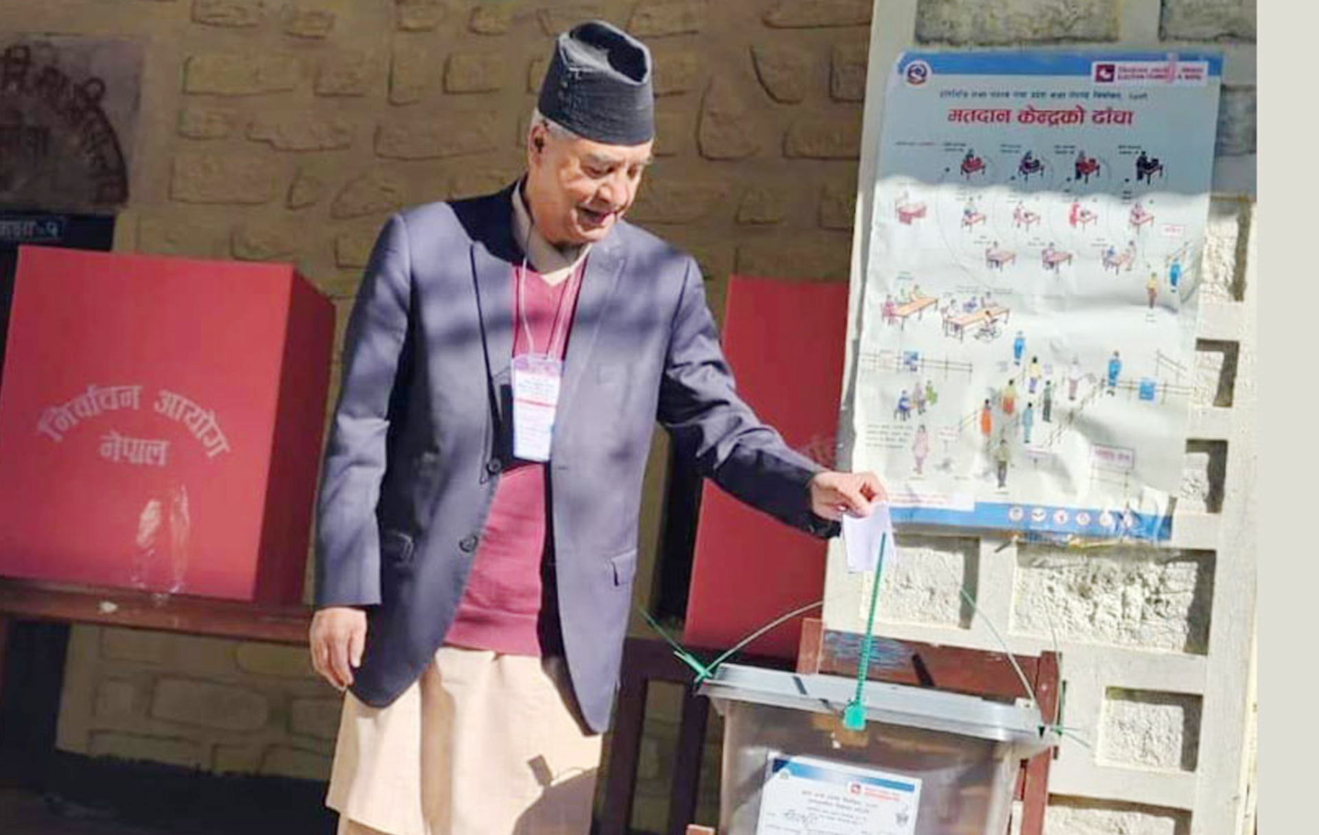 काठमाडौँ, ४ मंसिर । प्रधानमन्त्री एवं नेपाली कांग्रेसका सभापति शेरबहादुर देउवाले मतदान गरेका छन् ।
