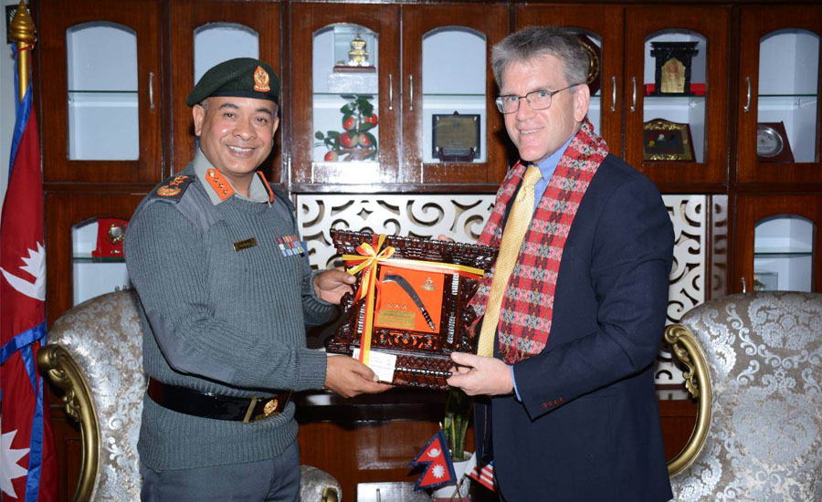 काठमाडौँ, १० मंसिर । सशस्त्र प्रहरी बल नेपालका सशस्त्र प्रहरी महानिरीक्षक राजु अर्याल र नेपालका लागि अमेरिकी राजदूत डिन आर. थम्पसनबीच भेटवार्ता भएको छ ।