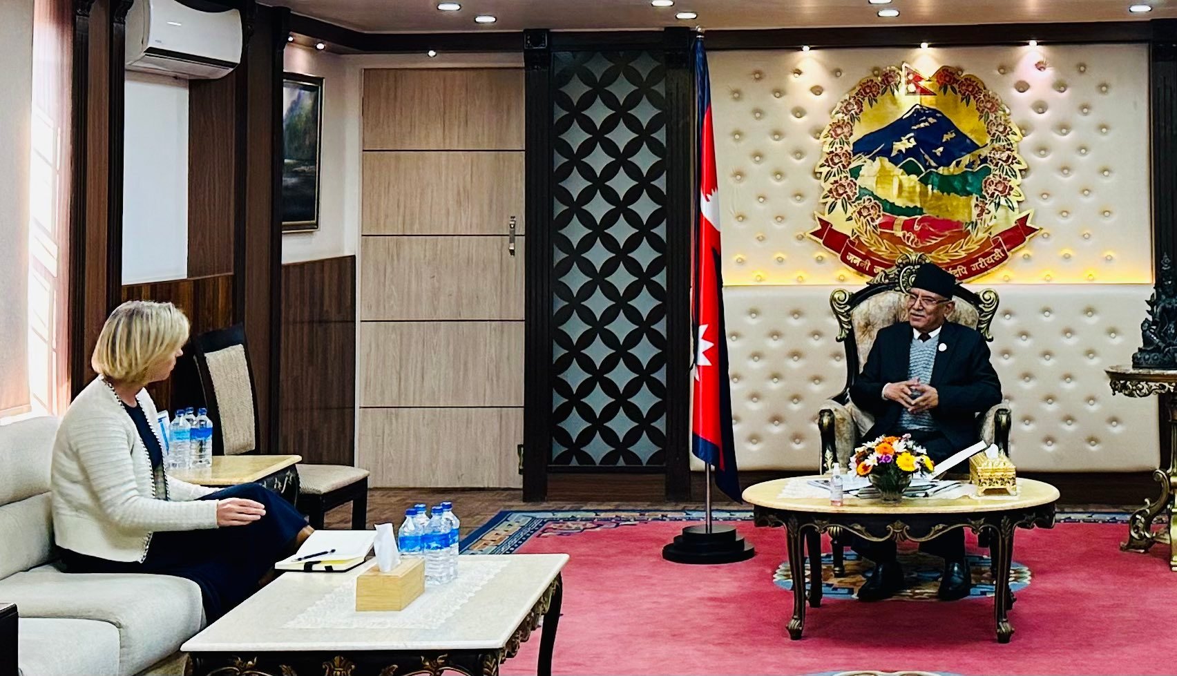 काठमाडौँ, ४ माघ । प्रधानमन्त्री पुष्पकमल दाहाल ‘प्रचण्ड’ र नेपालका लागि बेलायतकी राजदूत निकोला पोलिटबीच भेटवार्ता भएको छ ।