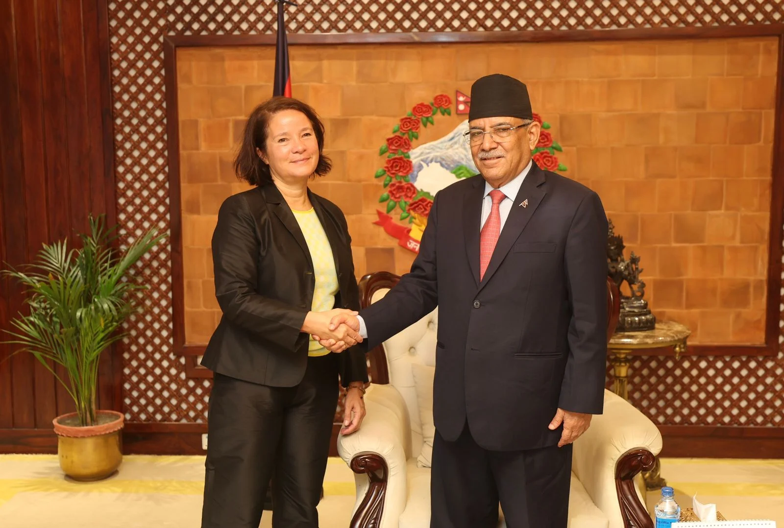 प्रधानमन्त्री निवास बालुवाटारमा आज भएको भेटमा द्विपक्षीय हित र चासोका विषयमा छलफल भएको प्रधानमन्त्रीको सचिवालयले जनाएको छ । यस्तै, नेपाल र युरोपेली सङ्घबीचको सम्बन्धलगायतका विषयमासमेत छलफल भएको बताइएको छ ।