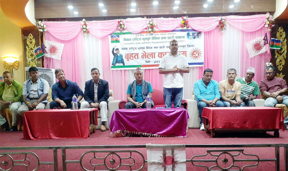 कार्यक्रममा संगठनका केन्द्रीय सदस्य एवं पुर्व जर्नेल बिनोद पाण्डेले भूतपूर्व सैनिक प्रहरीलाई देशप्रति ठूलो चिन्ता रहेको बताउदै देशको रक्षाका लागि, सुरक्षाका लागि, बिकासका लागि र शान्तिका लागि सधै अगाडि रहने बताउनु भयो । देशलाई एकताबद्ध बनाएर संगठन सक्रिय रहेको भन्दै उहाँले पार्टीको नीति, नियम, सिद्धान्तलाई अंगिकार गर्दै अगाडि बढ्ने बताउनुभयो ।