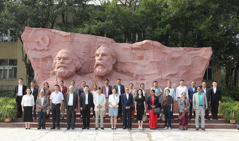 काठमाडौँ, १८ भदौ । चिनियाँ कम्युनिष्ट पार्टीको निमन्त्रणामा चीन भ्रमणमा रहेका नेकपा (एमाले) का महासचिव शङ्कर पोखरेल नेतृत्वको टोली विचार आदानप्रदानमा सहभागी भएको छ । टोली आज बिहान जनवादी गणतन्त्र चीनको मुख्य सहर छोङछिङमा रहेको चिनियाँ कम्युनिष्ट पार्टीको स्कुलमा आयोजित विचार आदनप्रदान कार्यक्रममा सहभागी हुनुका साथै स्कुलको अवलोकनसमेत गरेको छ ।