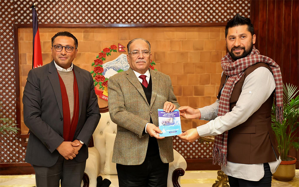 स्वर्णिम वाग्लेको नेतृत्वमा तयार पारेको संकट समाधानका उपायसहितको प्रतिवेदन बालुवाटारमा पुगेर बुझाएको हो।