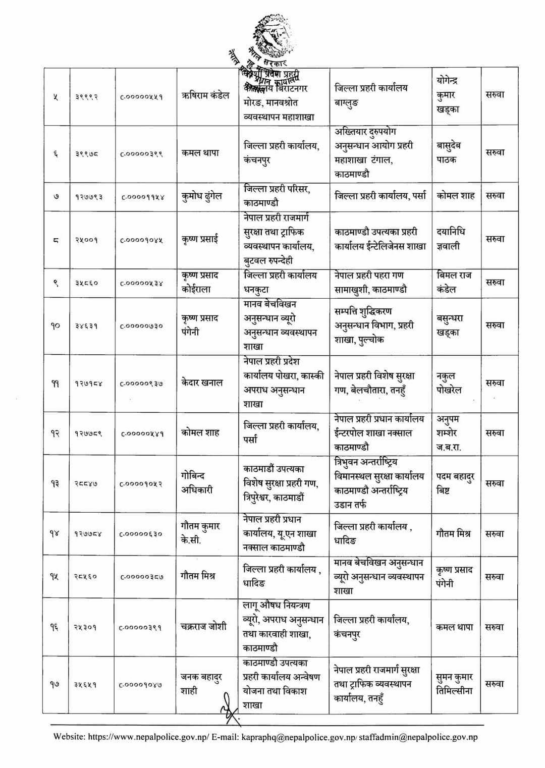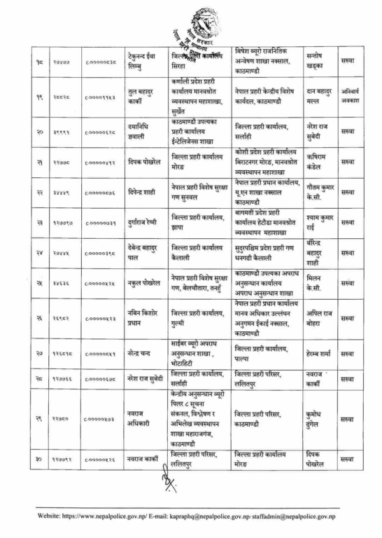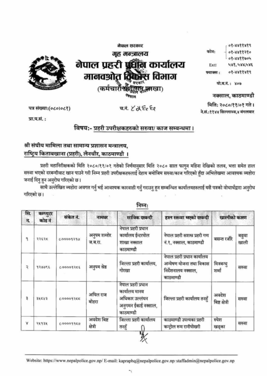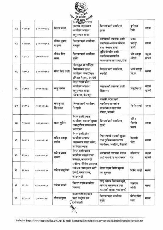 ७८ जना एसपीको सरुवा, २३ जिल्लाका प्रमुख फेरिए (सूचीसहित)