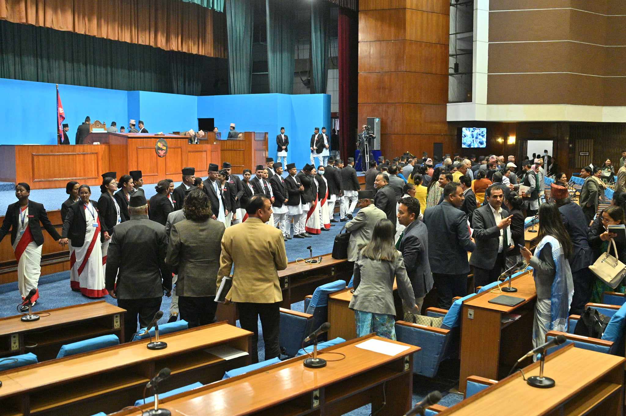 काठमाण्डौ,२ चैत । प्रमुख प्रतिपक्ष दल नेपाली कांग्रेसले प्रतिनिधिसभा बैठकमा वेल घेराउ गरेको छ ।शुक्रबार प्रतिनिधिसभाको दोस्रो बैठकमा सभामुख देवराज घिमिरेले उपप्रधानमन्त्री एवं गृहमन्त्री रवि लामिछानेलाई राजनीतिक दल सम्बन्धी दोस्रो संशोधन विधेयक, २०८० माथि विचार गरियोस्ु भन्ने प्रस्ताव प्रस्तुत गर्न अनुमति दिएसँगै कांग्रेसका सांसदहरूले संसदको वेल घेराउ गरेका हुन् ।