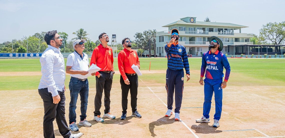 टस जिती पहिले ब्याटिङको निणर्य लिएको बरोडाले निर्धारित २० ओभरमा आठ विकेट गुमाएर एक सय ५६ रन बनाएको थियो । जवाफी ब्याटिङमा ओर्लिएको नेपालले १८।५ ओभरमा अलआउट हुनुअघि एक सय १९ रनमात्र बनाउन सक्यो ।