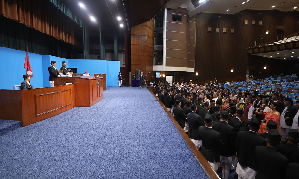 काठमाडौ ८ जेठ । प्रमुख प्रतिपक्ष दल नेपाली कांग्रेसको विरोधबीच प्रधानमन्त्री पुष्पकमल दाहालले संघीय संसदको दुवै सदनको संयुक्त बैठकलाई राष्ट्रपति रामचन्द्र पौडेलले गरेको नीति तथा कार्यक्रमको सम्बोधनको प्रति प्रतिनिधिधिसभा बैठकमा पेश गरेका छन् ।
