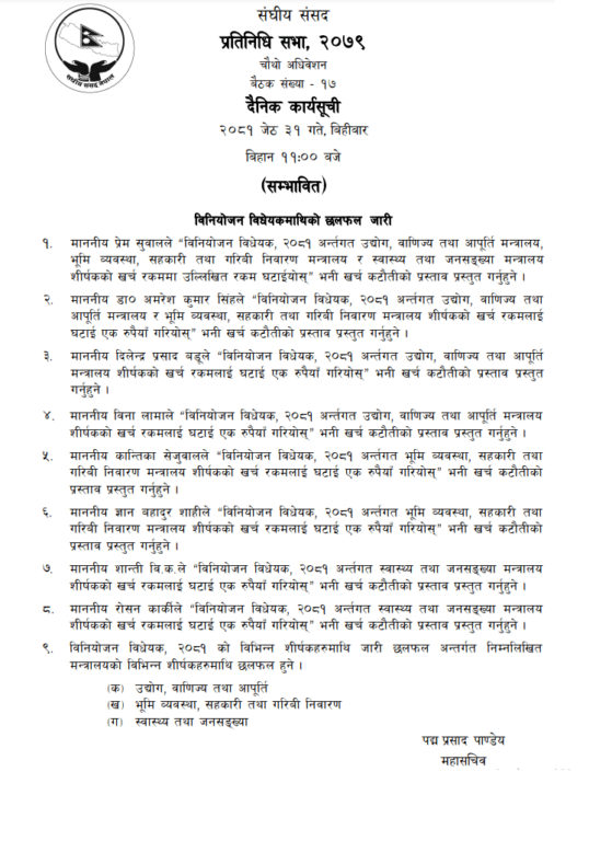 प्रतिनिधिसभा बैठक बस्दै, यस्तो छ कार्यसूची
