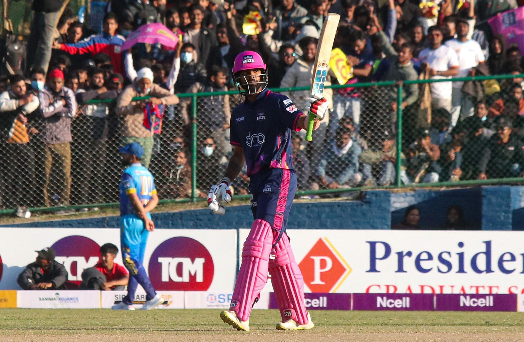 दोस्रो विकेटका लागि अनिल र लाहिरु मिलान्थाले ३३ रनको साझेदारी गरे । अघिल्लो खेलमा विराटनगर विरुद्ध अर्धतशक बनाएका मिलान्थाले १३ बलमा २ चौका र २ चौका प्रहार गर्दै २४ रन बनाए ।