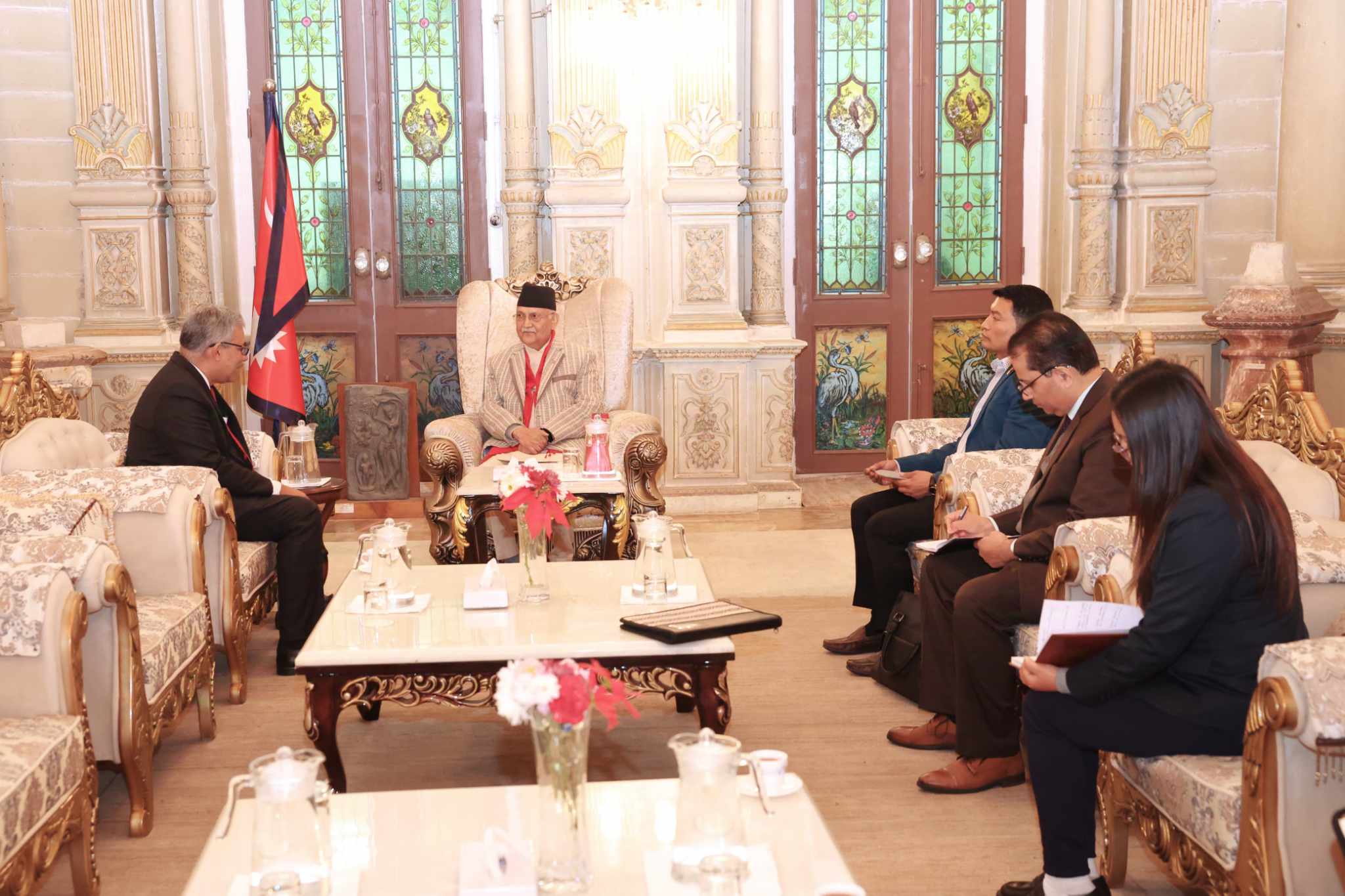 प्रधानमन्त्री तथा मन्त्रिपरिषद्को कार्यालय, सिंहदरबारमा भएको भेटमा प्रधानमन्त्री ओलीले आपसी सम्बन्धमा योगदान दिएकामा राजदूत चौधुरीलाई धन्यवाद दिनुभयो ।
