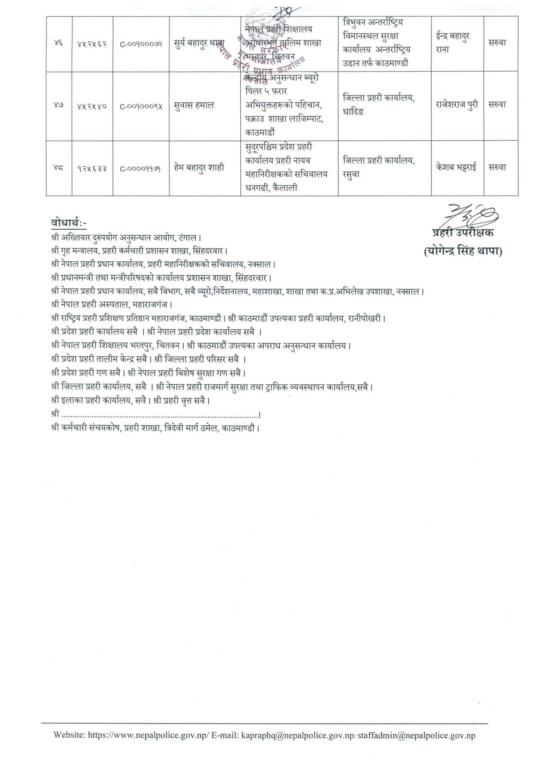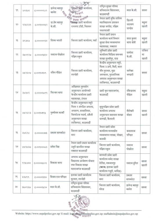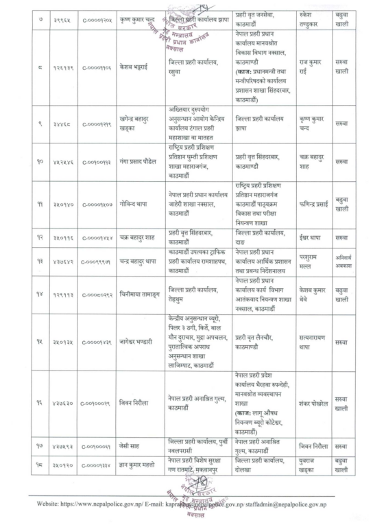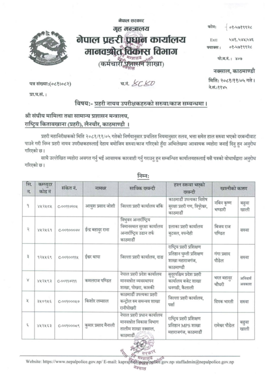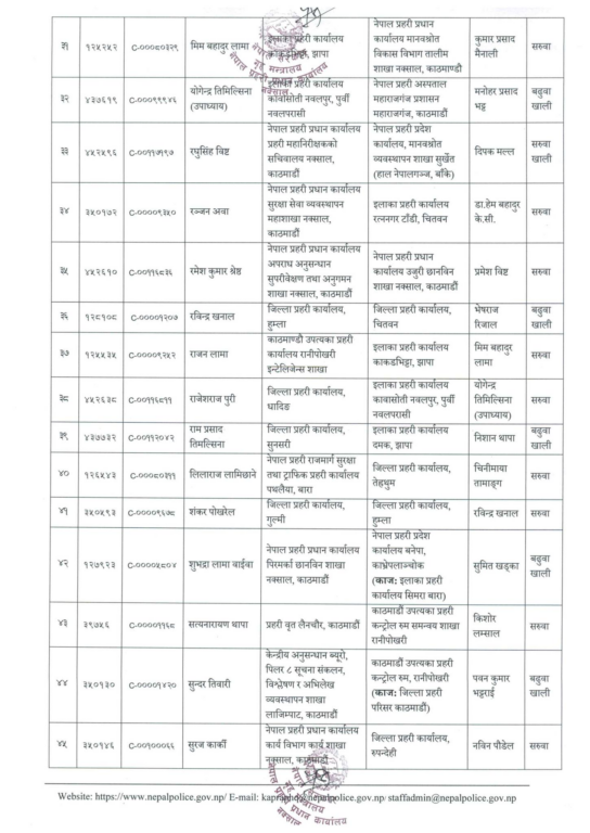 काठमाडौँ, ६ फागुन । नेपाल प्रहरीका ४८ प्रहरी नायव उपरीक्षक (डीएसपी)को सरुवा/काज गरिएको छ । प्रहरी महानिरीक्षकको सोमबारको निर्णयानुसार तलब, भत्ता समेत हाल सरुवा भएको दरबन्दीबाट पाउने गरी सरुवा/काज गरिएको हो ।