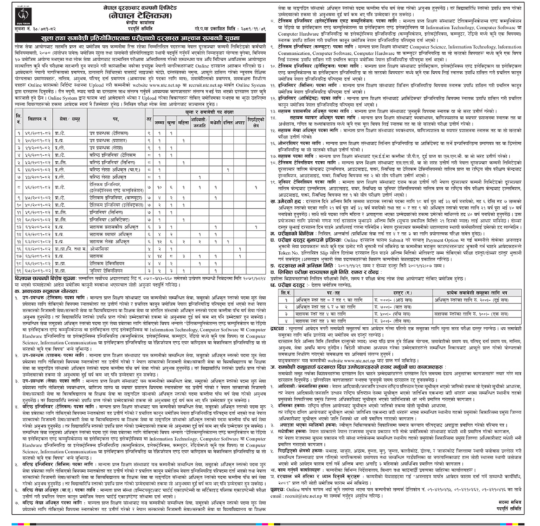 काठमाडौँ, ९ फागुन । नेपाल टेलिकममा विभिन्न पदका ६९ जना कर्मचारीका लागि विज्ञापन खुलेको छ । खुला तथा समावेशी प्रतियोगिताबाट पदपूर्ति गर्नका लागि नेपाल टेलिकमले आज विज्ञापन खुलाएको हो ।