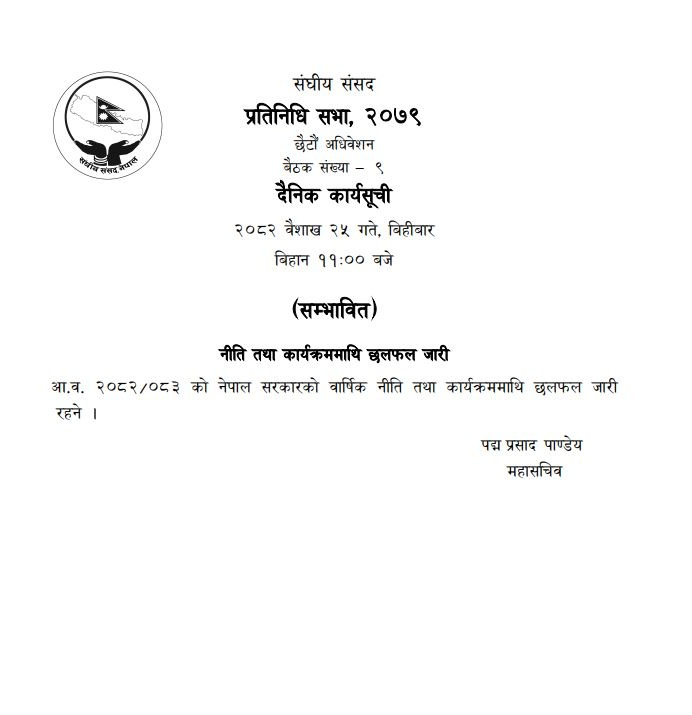 प्रतिनिधिसभामा बैठक बस्दै
