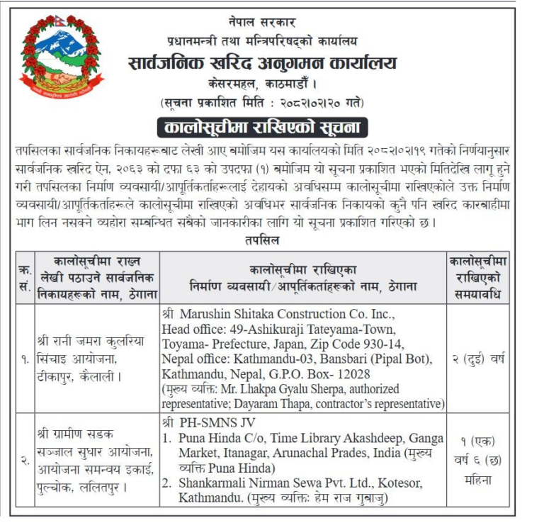 काठमाडौँ, २० जेठ । दुईवटा विदेशी र एउटा नेपाली निर्माण कम्पनी कालोसूचीमा परेका छन् ।