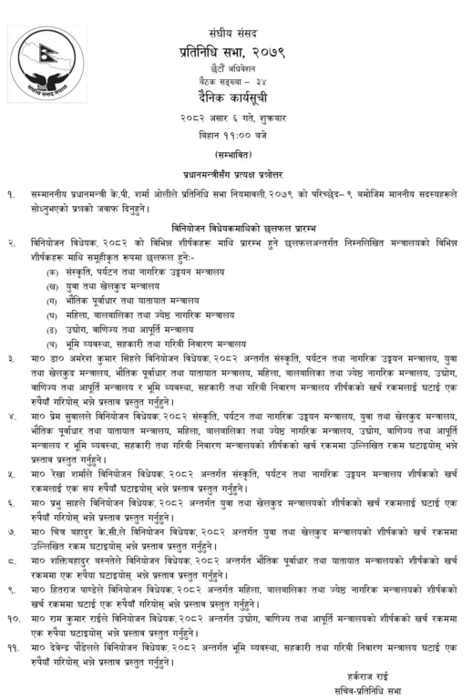 काठमाडौँ, ६ असार । प्रतिनिधिसभाको बैठक आज (शुक्रबार) बिहान ११ः०० बजे सङ्घीय संसद् भवन नयाँ बानेश्वरमा बस्दै छ ।