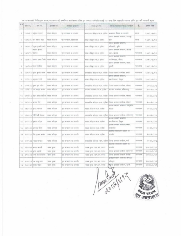 मन्त्रालयको कर्मचारी प्रशासन शाखाले निर्णय गर्दै २४ घण्टे उर्दी जारी गरेको हो । मन्त्रालयले वेभ पोर्टलमा आज सूची सार्वजनिक गर्दै मन्त्रालयले १८ शाखा अधिकृत र ५ नायब सुब्बालाई २४ घण्टे उर्दी जारी गरेको हो ।