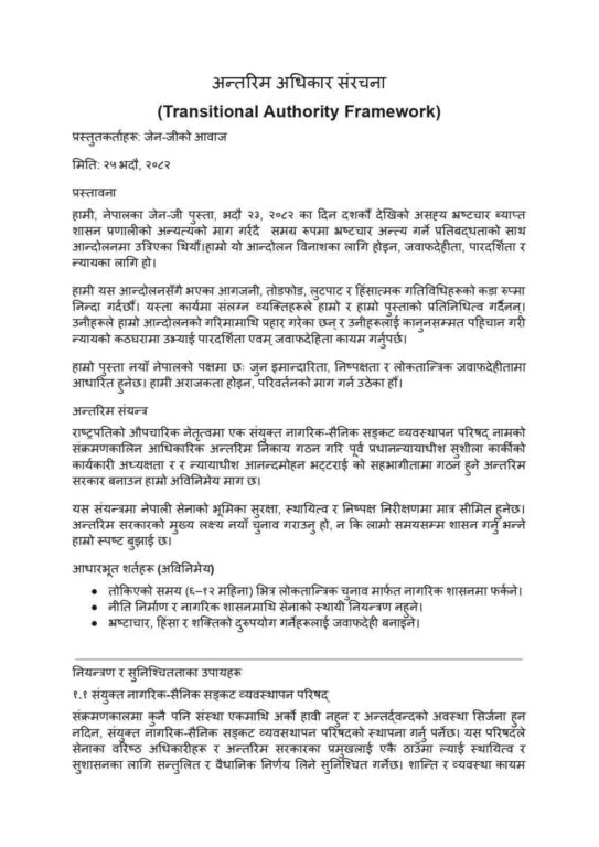 यस्तो छ, ‘जेन जेड’ले तयार पारेको ‘अन्तरिम अधिकार संरचना’