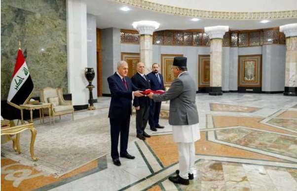 इराकका लागि नेपालका राजदूत लम्सालद्वारा ओहोदाको प्रमाणपत्र प्रस्तुत