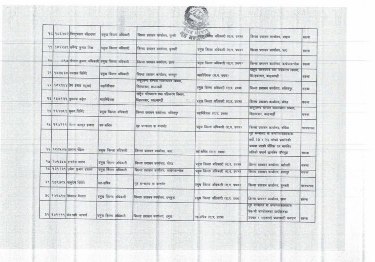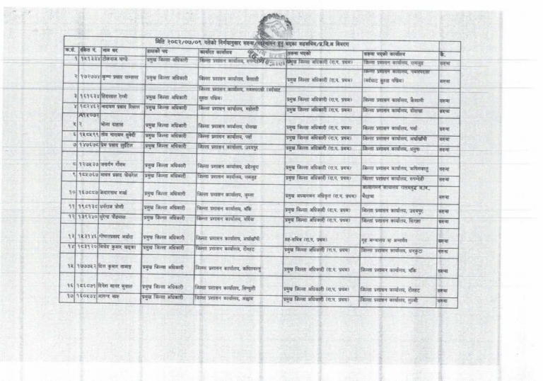 काठमाडौँ, ९ कार्तिक । गृह मन्त्रालयले विभिन्न जिल्लाका प्रमुख जिल्ला अधिकारी एवं मन्त्रालयका सहसचिव गरी ३६ जनाको सरुवा गरेको छ ।