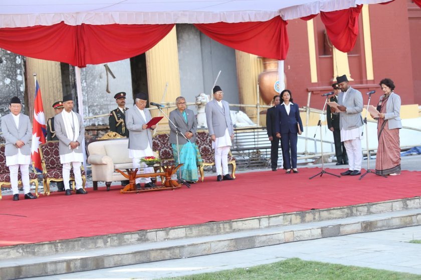 आज शीतलनिवासमा स्वास्थ्य तथा जनसंख्यामन्त्री नियुक्त डा. सुधा शर्मा गौतम र युवा तथा खेलकुद मन्त्रीमा नियुक्त बब्लु गुप्ताले राष्ट्रपतिबाट शपथ लिएका हुन् ।
